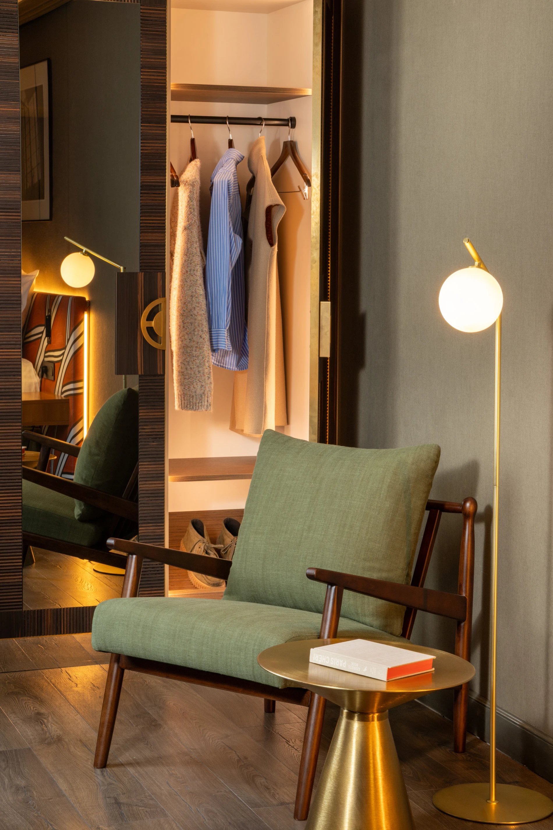 En plein cœur du 1er arrondissement, entre le Palais Royal et la Bourse de Commerce, l’Hôtel Louvre Piémont incarne l’esprit chic et contemporain de Paris. Un boutique-hôtel au charme discret, niché rue de Richelieu, à quelques pas du Louvre. L’élégance intemporelle s’allie à des touches audacieuses pour créer une ambiance raffinée, à la fois cosy et moderne. Parquet en pointe de Hongrie, bibliothèque en bois de noyer et détails en laiton brossé se marient subtilement aux fauteuils aux motifs graphiques et aux teintes profondes de vert, conférant à l'hôtel une atmosphère feutrée et intimiste.